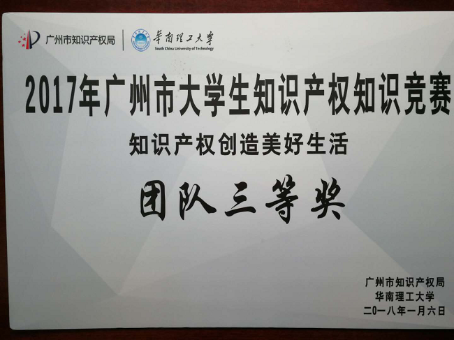 Beat365代表队荣获“2017年广州市大学生知识产权知识竞赛”三等奖