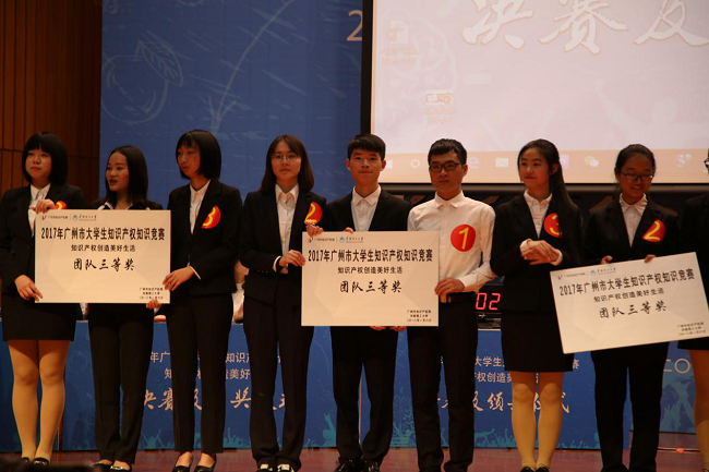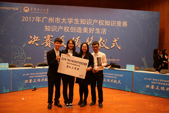 由广州市知识产权局主办,华南理工大学、华南师范大学承办,广州三环专利商标代理有限公司、广州骏思知识产权代理有限公司协办的2017年广州市大学生“知识产权创造美好生活”知识产权知识竞赛于1月6日圆满结束。中山大学新华学院(以下简称“学校”)受邀参加此次比赛。学校代表队——“新华逐梦队” 经过预选赛、初赛等层层环节的遴选,在50多所高校代表队中脱颖而出,在本次比赛中荣获三等奖。