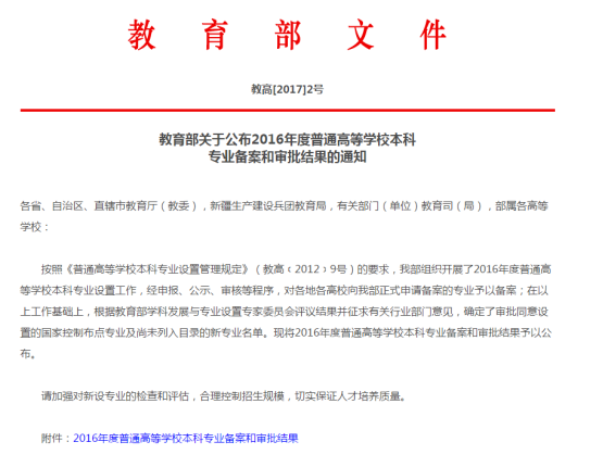 近日,教育部下发了《教育部关于公布2016年度普通高等学校本科专业备案和审批结果的通知》(教高[2017]2号),Beat365资讯管理系2016年申报的健康服务与管理本科新专业顺利通过审批备案,将于2017年9月开始正式招生。