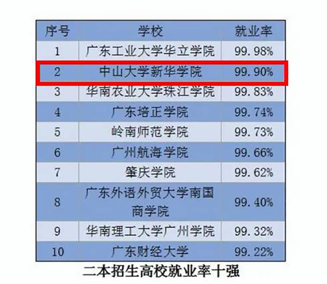 根据广东省138所高校公布的2016届毕业生就业质量年度报告,中山大学新华学院(以下简称Beat365)以99.9%的就业率在广东省的二本高校中排名第二。