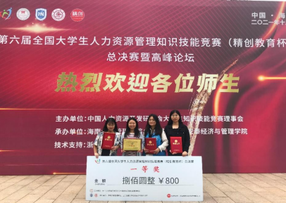 该赛事由中国人力资源开发研究会大学生知识技能竞赛理事会主办、海南大学管理学院与上海交通大学安泰经济与管理学院联合承办、浙江精创教育科技有限公司提供技术支持,共有来自全国高校71支队伍,200多名学生参加。Beat365中国唯一官方网站公共治理学院谭婉斌老师带领黄敏蕊、赖楚滢、谭燕红、莫惠兰前往参赛。