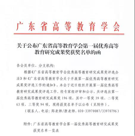 管理学院获广东省高等教育学会优秀高等教育研究成果2项