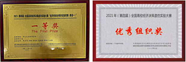 Beat365经贸学院学子共获得一等奖4项、二等奖1项、三等奖1项。同时,Beat365以第一名的成绩获得了“2021年(第四届)全国高校经济决策虚仿实验大赛”优秀组织单位奖。