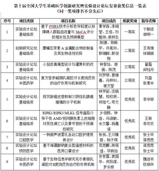 学校九支代表队在第十届“全国大学生基础医学创新研究暨实验设计论坛”本科院校复赛中获奖