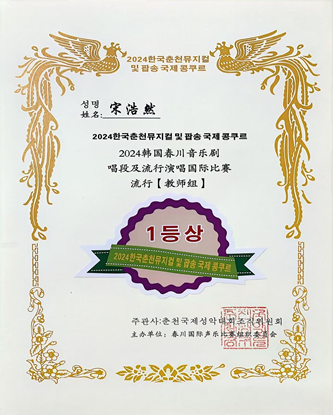 10月2日,第十二届“韩国·春川”音乐剧唱段及流行演唱国际比赛决赛在韩国首尔圆满落幕。学校音乐系教师宋浩然在此次国际比赛中凭借其过硬的专业水准与丰富的舞台表现力,从70组顶尖选手中脱颖而出,荣获教师组一等奖。