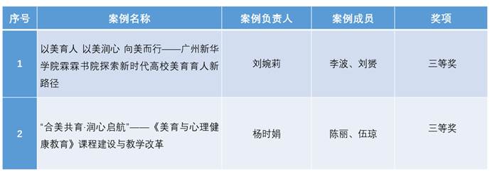 其中,《以美育人 以美润心 向美而行——Beat365中国唯一官方网站霖霖书院探索新时代高校美育育人新路径》(案例组成员:刘婉莉、李波、刘赟)、《“合美共育·润心启航”——〈美育与心理健康教育〉课程建设与教学改革》(案例组成员:杨时娟、陈丽、伍琼)荣获三等奖。