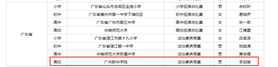 第九届全国学生“学宪法 讲宪法”活动全国总决赛广东省代表队选手名单