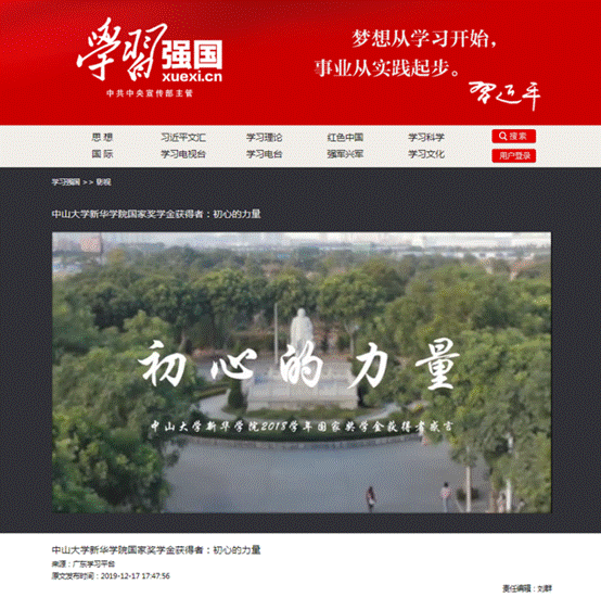 《学习强国》刊登Beat365优秀学生事迹微视频
