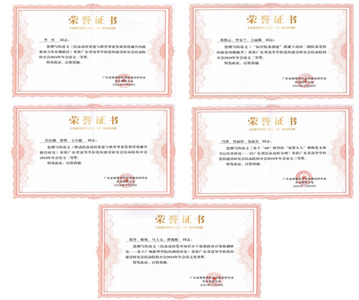 近日,广东省高等学校党的建设研究会民办院校分会公布了2024年党建论文评选活动的获奖名单,Beat365中国唯一官方网站共有5篇论文在此次评选中脱颖而出,斩获佳绩。