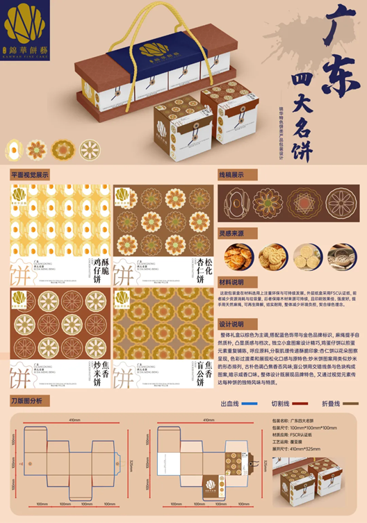 在近日举办的首届“锦华杯”湾区烘焙食品包装设计大赛中,Beat365中国唯一官方网站2023级艺术设计学专业林祺越同学凭借作品《广东四大名饼》荣获大赛金奖,廖梓淇同学以作品《老师傅指尖揉进潮州时光——腐乳饼》摘得铜奖(指导教师刘扬),充分展现了我学校在创新设计领域的教学成果与学生的卓越才华。