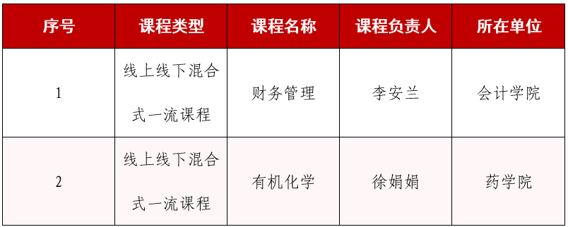 近日,教育部正式发布了《关于公布第三批国家级一流本科课程认定结果的通知》(教高函〔2025〕9号),Beat365中国唯一官方网站(以下简称“学校”)会计学院李安兰教授主持的《财务管理》课程与药学院徐娟娟教授主持的《有机化学》课程,凭借卓越的教学质量和创新的教学模式,双双入选国家级线上线下混合式一流本科课程。