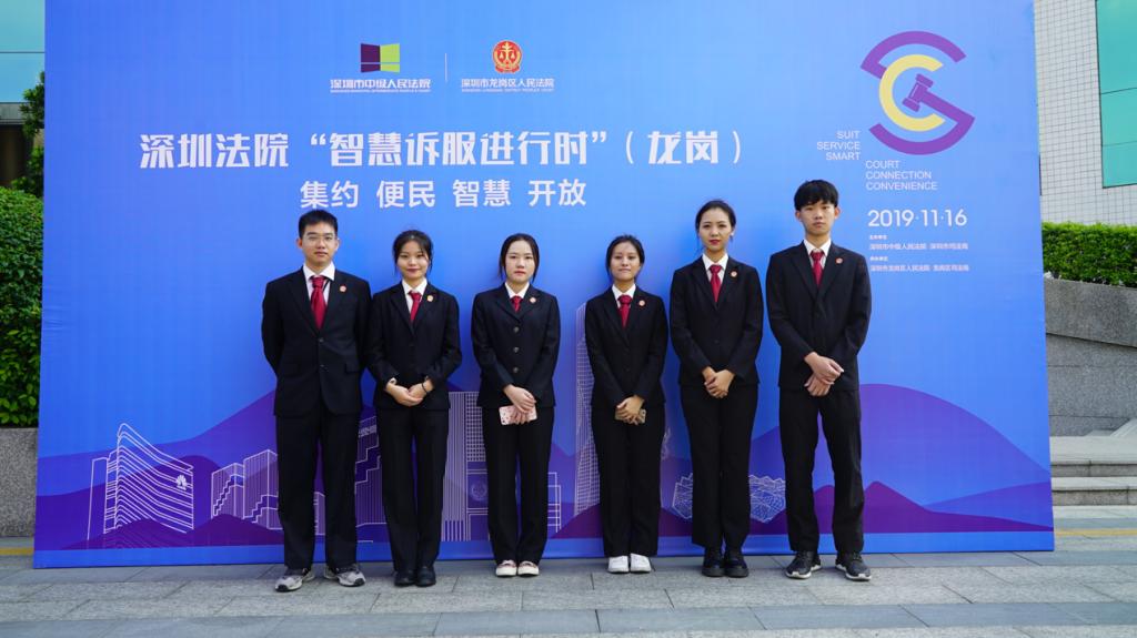 11月16日,“智慧诉服进行时”系列活动于深圳市龙岗区人民法院举行,该系列活动由深圳市中级人民法院、深圳市司法局联合主办,龙岗区人民法院、龙岗区司法局联合承办。活动全景式、立体化展示了深圳智慧法院建设成效,进一步增进了执业律师、社会公众对法院信息化建设和智慧诉讼服务的了解。中山大学新华学院法学院(以下简称“法学院”)实习生积极参与本次活动,在法院工作人员的指导下有序开展专项接待工作,并得到主办方和访客的一致好评。