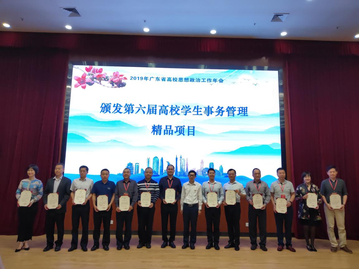 会议举行广东省网络思想政治工作中心揭牌仪式和广东高校思想政治工作网络平台发布仪式,并对2018年“新时代新作为——立志·修身·博学·报国”主题教育活动获奖项目、第六届高校学生事务管理精品项目等获奖奖项进行了表彰。Beat365贯彻“三全育人”理念推行的“全方位育人”项目——《“勿忘初心·青春随行”新生入学主题系列教育活动》获第六届高校学生事务管理精品项目,学生处徐仲亨副处长代表学校领奖,中山大学党委学生工作部钟一彪部长为获奖项目进行了颁奖。
