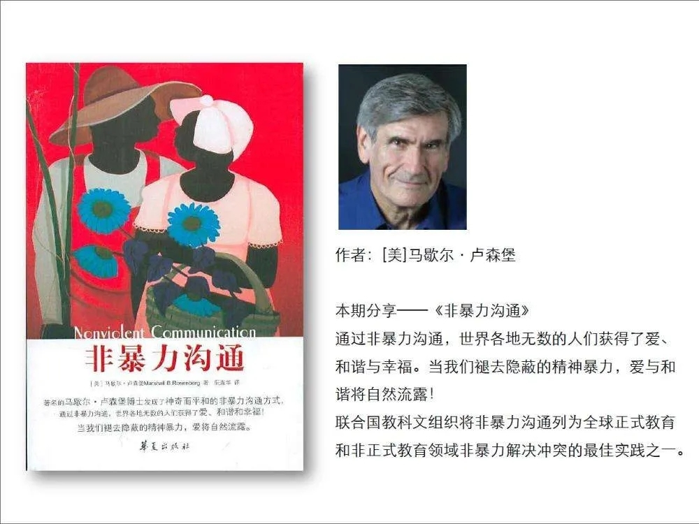 高婷:我会推荐《非暴力沟通》。在当今社会中,我们不仅要做好本职工作,还需要强调团结合作的力量,而良好关系的建立自然需要运用到沟通的技巧,《非暴力沟通》这本书便向我们展示了什么是有效的沟通艺术。