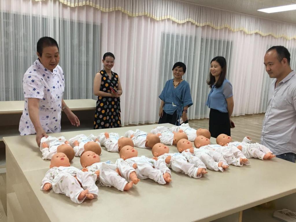 于凤兰(左一)为来访交流的哥弟月子中心来访嘉宾作实验室介绍(2019.9.10)