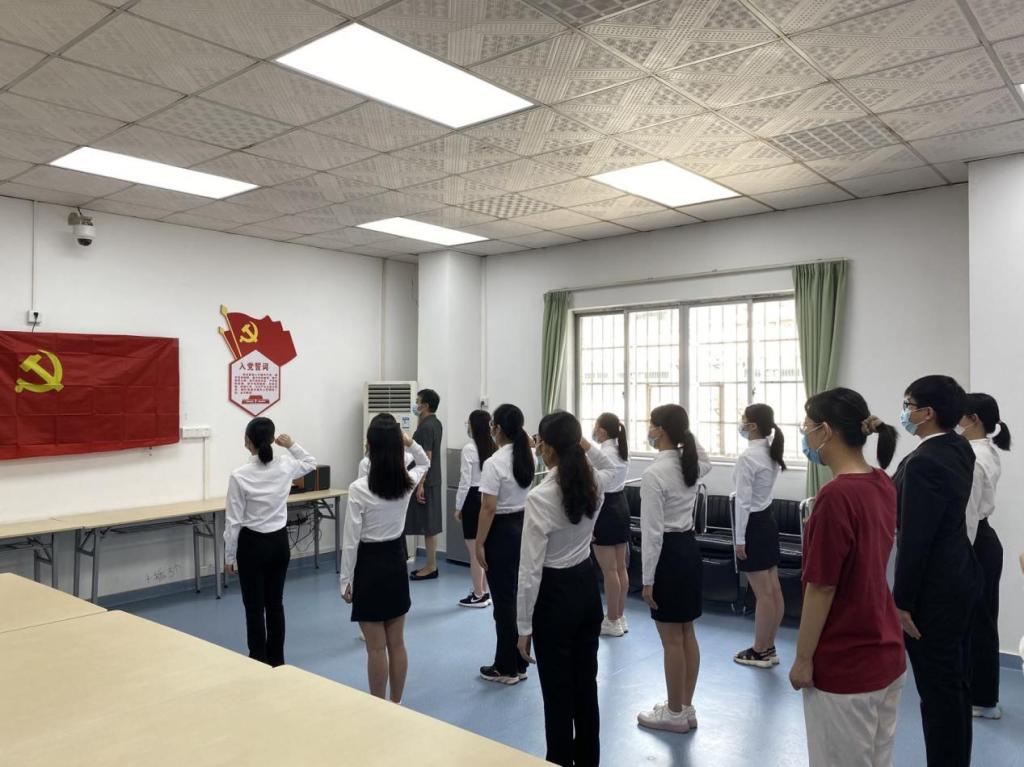 于凤兰带领新党员进行入党宣誓(一排右)(2021.7.1)