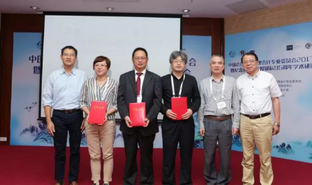 厦门大学傅元略教授(右一)为优秀论文获奖者颁发证书
