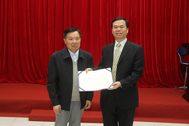 丁艮平部长宣读了《关于聘任林承光、伍建华教授为我院兼职教授的决定》,陈伟林院长为林承光、伍建华教授颁发了聘书。