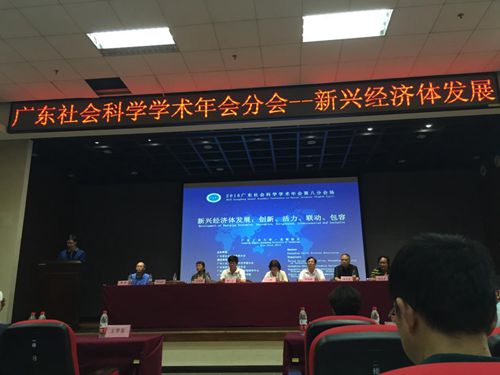 本次广东社会科学学术年会是广东省社会科学界联合会连续举行的第10次年会,也是广东省新兴经济体研究会作为社会团体第二次承办分会场。会议邀请到国内外近200名专家学者,与会代表围绕新兴经济体、产业技术创新、全球经济治理等多个议题进行了讨论。年会第八分会场是以“新兴经济体发展——创新、活力、联动、包容”为主题的专题研讨会,旨在对新兴经济体的发展形势进行深入的分析和研究,激活新兴经济体潜在产出,实现结构性改革,并从制度层面系统探讨如何构建新兴经济体发展新体制。