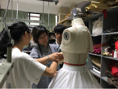 郑培心老师(左)正在进行服装工艺制作教学