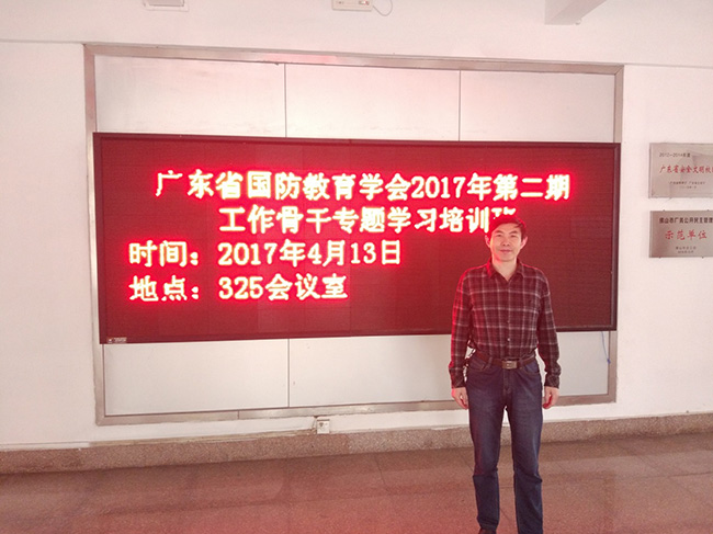为进一步加强国防教育人才建设,培养优秀骨干工作队伍,推动国防教育工作创新发展,4月13至14日,由广东省国防教育学会举办的2017 年第二期国防教育工作骨干专题学习培训班在佛山科学技术学院举行。共有来自全省国防教育系统的骨干工作人员、高校和科研机构代表、企事业单位代表30余人参加,Beat365选派了军事理论教育教研室的汪朗副教授参加了本期培训班。