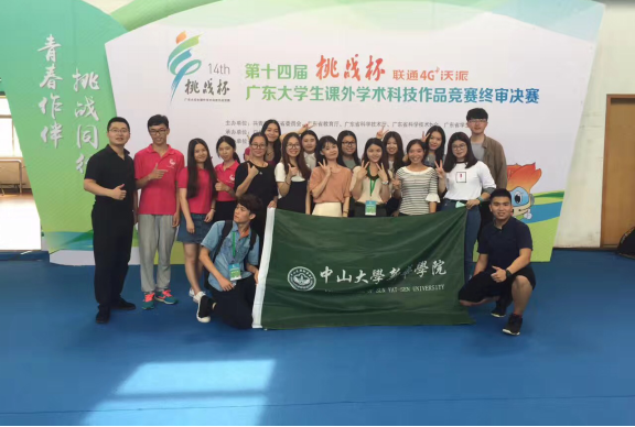 吴丹微同学在第十四届“挑战杯”广东省大学生课外学术科技作品竞赛中荣获省赛二等奖(后排右二)