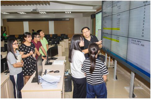 在感慨新华学子现有学习条件的优越性与人性化时,他不忘回头看一看,利用课余时间扎根实验室里“加料、补课”,正埋头操作、思索的学生。方主任介绍到,正因为经贸系教学注重实践,而学生也喜欢在实践中学习。这一学期系里公布评教结果,排名前十的都是在实验室上课的老师。“同学们对实验课很感兴趣!”方主任认为,新华在“接地气”这一方面做的特别好。自从系里实验室开放后,同学们都提早来上课,这是一个非常好的趋势。对于新华办学,走应用型大学建设这条道路,是非常有远见和时代感的。如果在应用型人才培养这方面做好了,新华在广东省乃至全国的实力和影响也会不断提升。