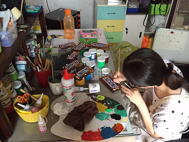 当然,她并非是三分热血光想不干的人。有了想法后,她经常去打听可以摆摊宣传自己作品的地方。每逢周末,她带着自己的作品去东莞市中心、寮步镇、石龙镇等地进行摆摊宣传,从一开始不敢叫卖也不敢和客人交流,到后来能滔滔不绝地介绍自己的原创作品,她说这个过程让她成长了不少。就在不断地实践中,让她越来越有想法,越来越敢于创作。