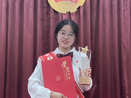 曾嘉嘉:青衿之志,履践致远。获得国家奖学金,我深感荣幸。我始终感恩党和政府对大学生成长成才的高度重视和殷切关怀,感谢学校和学院为我们提供的广阔平台,感念领导、老师对我们的悉心栽培,也要感谢一步一个脚印坚守初心的自己。
